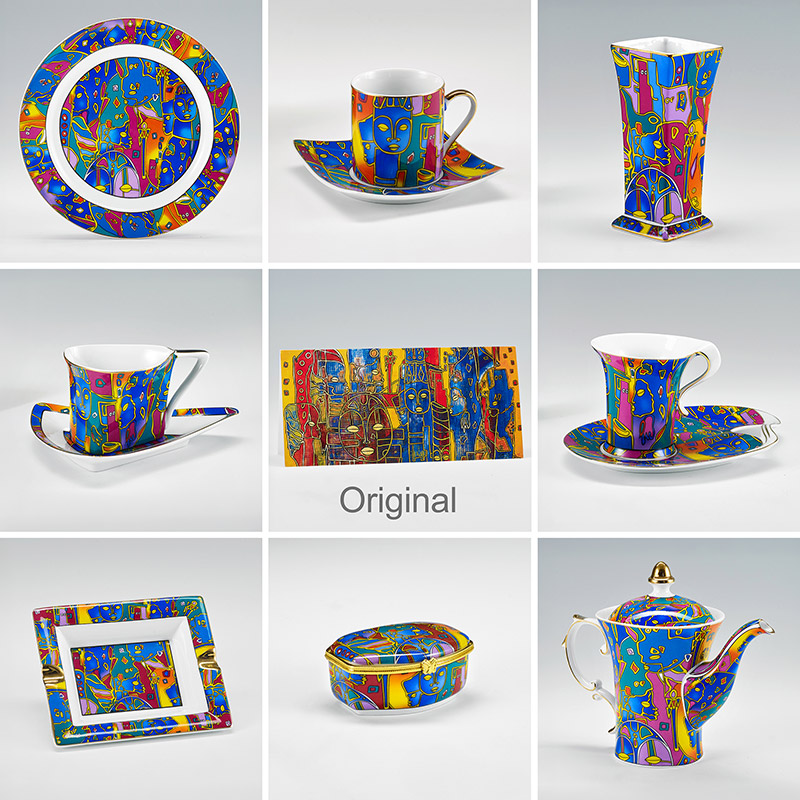 Ob attraktives Produktdesign oder innovative technische Lösung, ob Film, Musik, Mode - oder wie hier Kunst. Alles keine Selbstverständlichkeit. Darum verdienen Kreativität, Talent, Ideenreichtum und Erfindergeist unser aller Wertschätzung, und Schutz. Mangels Respektes vor dem geistigen Eigentum des Künstlers Jörg Mohme hat ein französischer Händler das Motiv aus der Reihe „Afrikanische Impressionen“ als Dekor für eine 35-teilige, sehr gut laufende Porzellanserie benutzt. Entdeckt wurden die Plagiate nur zufällig. Da der Händler uneinsichtig war und die Urheberrechtsfähigkeit bestritt, reichte Mohme Klage ein. Es folgte ein 9 Jahre dauernder, nervenaufreibender Prozess. Das Gericht in Lyon bestätigte den urheberrechtlichen Schutz des Originals sowie das Vorliegen einer Rechtsverletzung und verurteilte den Händler zu Unterlassung und Schadenersatz in erheblicher Höhe. Die einfache, faire Lösung wäre eine Anfrage zur Nutzung des Motivs gegen Lizenzgebühr gewesen.