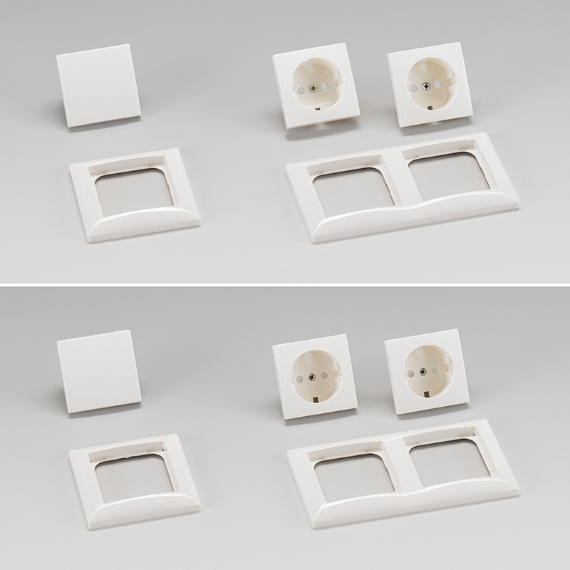 The “resemblance” to the Busch-Jaeger original is clearly intentional. Not only are the design and technical details of the “Busch-balance SI” series almost identical, but the imitation is also advertised with “The BBwhite switch range, matching Busch-Jäger Balance Si [sic] in Alpine White RAL9010, offers a cost-effective option”. Busch-Jaeger is taking legal action against this. Furthermore, Handelshaus Klein emphasizes in its description of its imitation that “the convex surface allows for unique design accents.” In fact, at least the well-known original manufacturers all have their own unique designs. And anyone looking for a suitable switch range will quickly realise how diverse the selection is and how different the ambience that switches can give to a room can be.